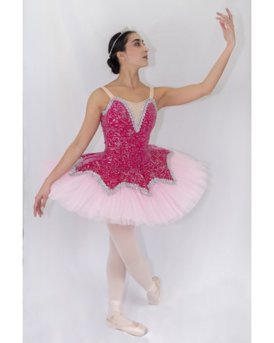 Tutù semiprofessionale con inserto nudo,  e strati di tulle trapuntati con applicazioni